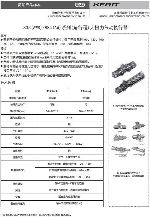 833(AWS)/834(AW)系列(角行程)大扭力氣動(dòng)執(zhí)行器
